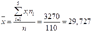 Решение. Вычислим сначала числовые характеристики выборки. Построим соответствующий простой вариационный ряд, выбрав в качестве вариант середины интервалов: