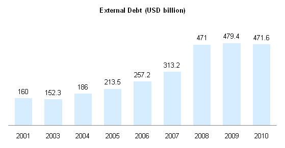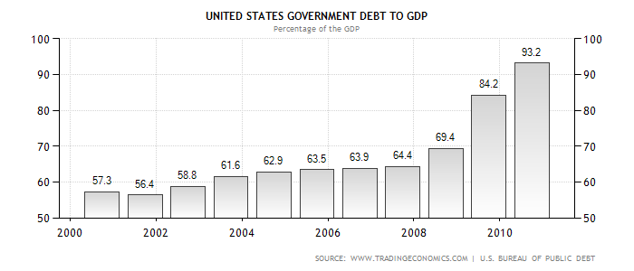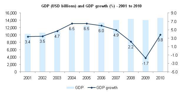 США: Отрицательная динамика прироста ВВП является характерной иллюстрацией наступившего кризиса в 2007 году. В 2008 году (по отношению к 2001 году), прирост ВВП составил всего 2.2% (2007 год- 4.9%), а уже в 2009 году упал до -1.7%. Вследствие чего, отношение долга к ВВП показало резкий рост в 2008-2010 гг. (от 64.4 до 93.2%). Отрицательная динамика торгового баланса в достигла апогея в пост- кризисный период 2009 года (достигнув -30 млрд. долларов США). Доходность от облигаций правительства так же снижалась в течение 2008-2011 года, что может говорить о росте недоверия участников рынка к данному инструменту для вложений. Но вместе с тем, присвоенный рейтинг ECR признается как стабильный (ECR score 80.9 -2008; ECR rank 5). Следует отметить, что изменение в оценке в период 2007-2010 происходило на несущественном уровне. Неисполнение своих обязательств по мнению аналитиков маловероятно.