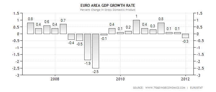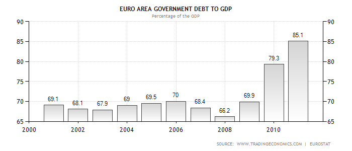 Евро Зона: прирост ВВП в Евро Зоне показал замедленную отрицательную динамику после 2008 года (на конец 2008: 0.7%, к середине 2009 года: -2.5%), показав восстановление только к 2010 году. Торговый баланс также показывал отрицательные результаты и сильный разброс в показателях до середины 2009 (максимальный дефицит начало 2008, середина 2009 -15 млрд. евро). Отношение долга к ВВП уменьшалось с 2006 года по 2008 (от 70% до 66.2%), что может быть связано, прежде всего, не с уменьшением абсолютной величиной долга, а относительно низким приростом ВВП. Рейтинги, присвоенные основным странам Еврозоны: