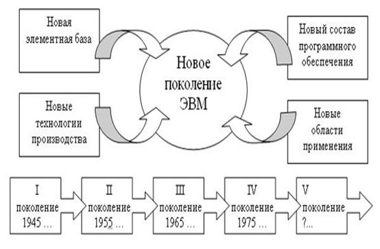 Рис. 4.16 Задание 1. Постройте схему «История поколений ЭВМ» рисунка, примените различные типы заливки и обрамления фигур линиями. Сгруппируйте элементы.