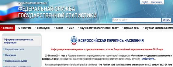 www.gks.ru Сайт Росстата (ранее – Государственная служба статистики) – это главная статистическая служба России, которая рассчитывает и публикует информацию о ключевых социально-экономических показателях, таких как ВВП, индекс потребительских цен и цен производителей, индексы производства по всем видам экономической деятельности, отдельные показатели функционирования различных видов экономической деятельности. Основное издание Росстата – статистический ежегодник, содержащий наиболее полную информацию о социально-экономических показателях России за предыдущий год. Также ежемесячно выходят данные о краткосрочных показателях и доклады о социально-экономическом положении в России. Выпускаются специализированные статистические сборники, касающиеся отдельных отраслей: например, «Промышленность России», «Регионы России», «Финансы России», «Демографический ежегодник России» и т.п.