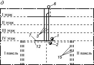 4, 5 – этажный штрек соответственно транспортный и вентиляционный;6 – вентиляционный ствол; 7 – главный транспортный штрек; 8, 9 – ярусный штрек соответственно транспортный и вентиляционный; 10 – выемочный бремсберг; 11 – выемочный вентиляционный ходок; 12 – главный вентиляционный штрек; 13, 14 – выемочный штрек соответственно транспортный и вентиляционный; 15 – панельный уклон с ходками Таким образом, каждый способ подготовки характеризуется определенным комплексом подготавливающих выработок, а именно: – этажный — капитальный бремсберг и капитальный уклон с ходками, этажные штреки; – панельный — главные штреки, панельные бремсберги и уклоны с ходками, ярусные штреки; – погоризонтный — главные штреки, выемочные бремсберги и уклоны с ходками; – главными штреками — главные штреки.