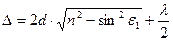где d – толщина пластинки (пленки); ε1 – угол падения; ε2 – угол преломления. Второе слагаемое в формулах учитывает изменение оптической длины пути световой волны на λ/2 при отражении ее от среды оптически более плотной. В проходящем свете (рис. 1,б) отражение световой волны происходит от менее плотной оптической среды и дополнительной разности хода световых лучей не возникает.