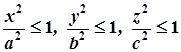 1. Еліпсоїд не проходить через початок координат, бо координати точки 2. Еліпсоїд перетинає кожну із координатних осей у двох точках, симетричних відносно початку координат, а саме: вісь вісь вісь Ці точки називаються вершинами еліпсоїда, відрізки 3. Еліпсоїд симетричний відносно всіх координатних площин, координатних осей і початку координат, бо всі змінні входять у його рівняння в парних степенях. 4. Із рівняння (1) випливає, що Це означає, що еліпсоїд є обмеженою поверхнею, яка міститься всередині прямокутного паралелепіпеда, обмеженого площинами: 5. Якщо еліпсоїд перетнути площиною