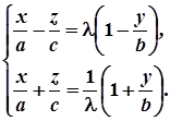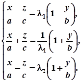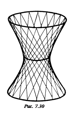 § 11. Прямолінійні твірні на поверхні другого порядку Виявляється, що не тільки циліндричні і конічні поверхні можуть утворитися з прямих ліній. Такими властивостями володіють також однопорожнинний гіперболоїд і гіперболічний параболоїд. 11.1. Прямолінійні твірні на поверхні однопорожнинного гіперболоїда Розглянемо однопорожнинний гіперболоїд, заданий канонічним рівнянням