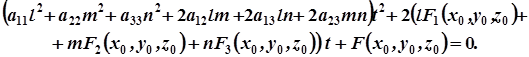 Знайдемо координати точок перетину поверхні (1) і прямої (2). Для цього підставимо (2) в (1) і скористаємося позначеннями, введеними в § 12. Матимемо: