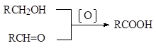 Карбоновые кислоты могут быть получены также окислением первичных спиртов или альдегидов. В качестве окислителей обычно используют соединения хрома в высшей степени окисления, например, хромовый ангидрид, перманганат калия в щелочной среде, концентрированную азотную кислоту. Альдегиды легко окисляются и другими окислителями, напрмер, аммиачным раствором оксида серебра (реакция «серебряного зеркала»).