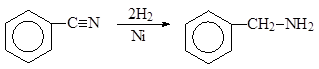 б) Восстановление до первичных аминов. При каталитическом гидрировании нитрилов образуются первичные амины. Например, гидрирование бензонитрила на никелевом катализаторе приводит к бензиламину.