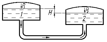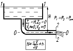В случае схемы 2 из всей суммы коэффициентов местных сопротивлений выделяется коэффициент внезапного расширения при входе трубы в емкость 2 (он равен единице, т.е. z = 1). Если труба круглая, то (2.6) преобразуется к виду (V = 4 Q/pd 2)
