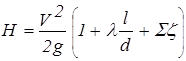Суммарные потери hΣ складываются из потерь по длине hl и местных hм