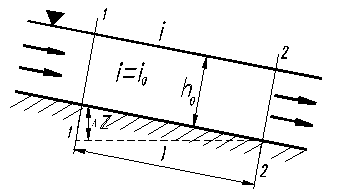 Тяжести. При этом потенциальная энергия переходит в кинетическую и кинетическая энергия за счет трения преобразуется в тепло. Из (6.1) также следует, что до тех пор, пока к потоку применимо уравнение Бернулли потери на участке не зависят от шероховатости, а зависят от уклона дна. В открытых руслах, как правило, наблюдается турбулентный режим движения. Открытые каналы Безнапорное движение жидкости имеет место в открытых руслах и характерно тем, что на свободной поверхности жидкости давление равно атмосферному, например, реки, каналы, лотки и т.д. При равномерном движении гидравлические элементы потока – площадь сечения, глубина и т.д. не изменяются по его длине; следовательно, равномерное движение невозможно в естественных руслах. На рис. 6.1 показан профиль потока в условиях равномерного движения. Глубина вдоль течения постоянна, поэтому гидравлический уклон равен пьезометрическому, т.е. уклону свободной поверхности и оба они равны уклону дна канала io.
