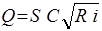 где S – площадь сечения, i – геометрический уклон, R – гидравлический радиус, С – коэффициент Шези, зависящий от гидравлического радиуса R и от шероховатости русла. Для коэффициента Шези предложено несколько зависимостей, одна из наиболее простых – формула И.И. Агроскина С = 1/ n + 17,72 lgR, где n – коэффициент шероховатости определяется по таблицам. При расчете открытых каналов встречаются следующие типовые задачи: Задача 1. Заданы: глубина потока h, все геометрические элементы сечения, необходимые для определения гидравлического радиуса R и площади сечения S, коэффициент шероховатости стенок канала n и уклон дня канала i. Определить: расход воды в канале Q. Решение задачи сводится к определению R, S, C и к подстановке их в формулу (6.2). Задача 2. Заданы: расход воды Q, все геометрические параметры кроме глубины, коэффициент шероховатости n и уклон дна канала i 0. Определить: глубину потока h. Для определения h необходимо решить уравнение (6.2) с одним неизвестным – h; оно решается на ЭВМ или графоаналитическим методом. Задача 3. Заданы: расход воды Q, все геометрические параметры сечение и глубина, коэффициент шероховатости стенок канала n. Определить уклон дня канала i. Уклон определяется по формуле Шези (6.2)