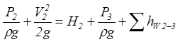 Это уравнение является основным для расчета всасывающих трубопроводов. Оно показывает, что процесс всасывания, т. е. подъем жидкости на высоту Н1, сообщение ей кинетической энергии и преодоление всех гидравлических сопротивлений происходит за счет использования (с помощью насоса) давления р0. Во время работы насоса на его входе создается вакуум и жидкость под действием разности давлений (атмосферного и низкого давления на входе) поступает в насос. Возможны следующие задачи расчета всасывающего трубопровода. Задача 1. Даны все геометрические параметры трубопровода и расход. Требуется найти абсолютное давление перед входом в насос. Решение этой задачи представляет поверочный расчет всасывающего трубопровода. Абсолютное давление Р1, полученное по уравнению (12.1) сравнивают с тем, которое является минимально допустимым. Задача 2. Дано минимально допустимое абсолютное давление перед входом в насос Р1. Требуется найти одну из следующих предельных величин: H1min, Qmax, dmin, p0min. Эта задача также решается с помощью уравнения (12.1). Для уравнения запишем уравнение Бернулли для напорного трубопровода, т. е. для сечений 2 – 2 и 3 – 3: