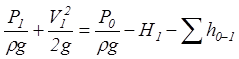 Составим уравнение Бернулли для потока во всасывающем трубопроводе, т. е. для сечений 0 – 0 и 1 – 1 (принимается α=1):