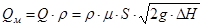 где Q – объёмный расход, м3/с, ΔН – напор в м. вод. столба