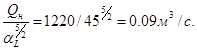 то вместо воды должна быть взята жидкость вязкостью в тысячу раз меньше, чем вязкость воды, так как νМ = (0,01)3/2νН = 0,001νН. В настоящее время таких жидкостей нет и выполнение условия, поставленного в задаче возможно лишь при ограниченных различиях в линейных размерах модели и натуры. Задача 3.5.2 при строительстве моста с промежуточными опорами они обычно вызывают подпор в водотоке (повышение уровня). Для уточнения этого подпора hн проводилось моделирование в лабораторных условиях. Длина натуральной мостовой опоры lн=20м, ширина её bн=4,0м. Глубина воды в русле до устройства моста Hн=7,2м. средняя скорость течения воды υн=2,0м/с, расход воды в реке Qн=1220м3/с. Исходя из возможностей лабораторного оборудования линейный масштаб был принят равным αL=45(т.е. Lн/Lм=45). Определить длину и ширину опоры на модели, глубину потока на модели, расход воды в модельной установке и подпор. Решение: находим линейные размеры модели. Длина опоры lн=20/45=0,44м, ширина опоры bн=4,0/45=0,088м, глубина потока на модели Hн=7,2/45=0,16м. необходимую скорость течения воды на модели находим исходя из равенства чисел Фруда на натуре и на модели В результате опытов было установлено, что подпор на модели hм=0,025м. В натуре подпор будет hн=45. hм=1,125м.