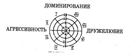 Методика создана Т. Лири, Г. Лефоржем, Р. Сазеком в 1954 г. и предназначена для исследования представлений субъекта о себе и идеальном «Я», а также для изучения взаимоотношений в малых группах. С помощью данной методики выявляется преобладающий тип отношений к людям в самооценке и взаимооценке. При исследовании межличностных отношений наиболее часто выделяются два фактора: доминирование-подчинение и дружелюбие-агрессивность. Именно эти факторы определяют общее впечатление о человеке в процессах межличностного восприятия. Они названы М. Аргайлом в числе главных компонентов при анализе стиля межличностного поведения и по содержанию могут быть соотнесены с двумя из трех главных осей семантического дифференциала Ч. Оттуда: оценка и сила. В многолетнем исследовании, проводимом американскими психологами под руководством Б. Бейлза, поведение члена группы оценивается по двум переменным, анализ которых осуществляется в трехмерном пространстве, образованном тремя осями: доминирование-подчинение, дружелюбность-недружелюбность, эмоциональность-аналитичность. Для представления основных социальных ориентации Т. Лири разработал условную схему в виде круга, разделенного на секторы. В этом круге по горизонтальной и вертикальной осям обозначены четыре ориентации: доминирование-подчинение, дружелюбие-враждебность. В свою очередь, эти секторы разделены на восемь - соответственно более частным отношениям. Для еще более тонкого описания круг делят на 16 секторов, но чаще используются октанты, определенным образом ориентированные относительно двух главных осей. Схема Т. Лири основана на предположении, что чем ближе результаты испытуемого к центру окружности, тем сильнее взаимосвязь этих двух переменных. Сумма баллов каждой ориентации переводится в индекс, где доминируют вертикальная (доминирование-подчинение) и горизонтальная (дружелюбие-враждебность) оси. Расстояние полученных показателей от центра окружности указывает на адаптивность или экстремальность интерперсонального поведения. Опросник содержит 128 оценочных суждений, из которых в каждом из 8 типов отношений образуются 16 пунктов, упорядоченных по восходящей интенсивности. Методика построена так, что суждения, направленные на выявление какого-либо типа отношений, расположены не подряд, а особым образом: они группируются по 4 и повторяются через равное количество определений. При обработке подсчитывается количество отношений каждого типа. Т. Лири предлагал использовать методику для оценки наблюдаемого поведения людей, т. е. поведения в оценке окружающих («со стороны»), для самооценки, оценки близких людей, для описания идеального «Я». В соответствии с этими уровнями диагностики меняется инструкция для ответа. Максимальная оценка уровня - 16 баллов, но она разделена на четыре степени выраженности отношения: 0-4 балла - низкая 5-8 баллов - умеренная адаптивное поведение _________________________________________________________________ 9-12 баллов - высокая экстремальное поведение 13-16 баллов - экстремальная до патологии Разные направления диагностики позволяют определить тип личности, а также сопоставлять данные по отдельным аспектам. Например, «социальное "Я"», «реальное "Я"», «мои партнеры» и т. д. Методика может быть представлена респонденту либо списком (по алфавиту или в случайном порядке), либо на отде