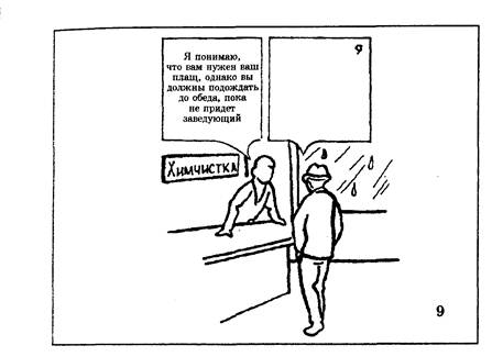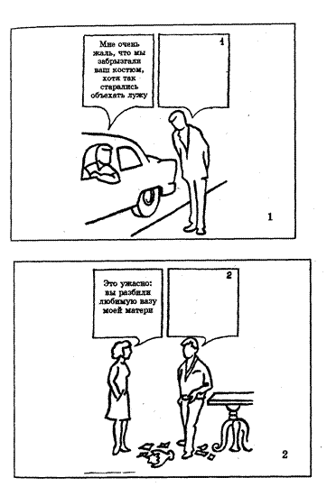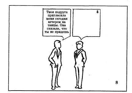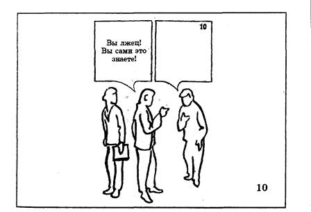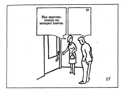 Инструкция «На каждом рисунке изображены два или несколько человек. Человек слева всегда изображен говорящим какие-то слова. Вам надо на листе ответов под номером, соответствующим рисунку, написать первый пришедший на ум ответ на эти слова. Не старайтесь отделаться шуткой. Действуйте по возможности быстрее».