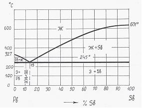 Температурный интервал, в котором протекает кристаллизация сплава 60% Sb + 40% Pb, составляет…