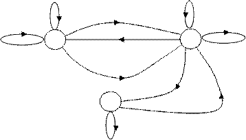 Рис. 7.3 При этом достаточно достаточно потребовать, чтобы входное слово, представляющее произвольное число, всегда имело один незначащий нуль. Последнее предположение требуется для того, чтобы длина результата равнялась длине входного слова. Состояния q 0 и q 1 приведенного автомата необходимы для запоминания значения переноса в старший разряд при поразрядном умножении входного числа на 2. На диаграммах автоматов наборы значений одноименных разрядов чисел n 1,..., n k будем представлять горизонтальными последовательностями. Пример. На рис. 7.4 изображена диаграмма переходов автомата, который из начального состояния q 0 вычисляет функцию f (x, y) = 2x + y. Входным алфавитом этого автоматаявляется множество: { 00, 01, 10, 11 }.