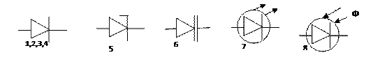 Основные параметры диодов и их классификация (один переход и два вывода). Классификация диодов: 1. По назначению: a. Низкочастотные (выпрямители) до 200кГц b. Универсальные за 200кГц (МГц) c. Импульсные d. СВЧ (сверхвысокочастотные) уже ГГц e. Опорные (стабилитроны) f. Варикап (меняющаяся ёмкость) g. Светодиод СД h. Фотодиод ФД i. Оптрон (Сд+ФД) j.