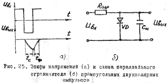 Как и в последовательном диодном ограничителе, на форму выходного сигнала в параллельном диодном ограничителе существенно влияет емкость нагрузки