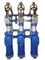 Три полюса масляного выключателя расположены на опорных изоляторах, которые находятся на стальной раме. Основой выключателя (полюса) является металлический цилиндр. В металлическом цилиндре расположены малый и большой изоляционные цилиндры. В металлическом цилиндре каждого из трех полюсов расположен неподвижный контакт. Подвижный контакт – контактный стержень, он соединяется с токоведущей клеммой при помощи медных гибких связей. Изоляция контактного стержня от цилиндра самого коммутационного аппарата осуществляется при помощи проходного изолятора.