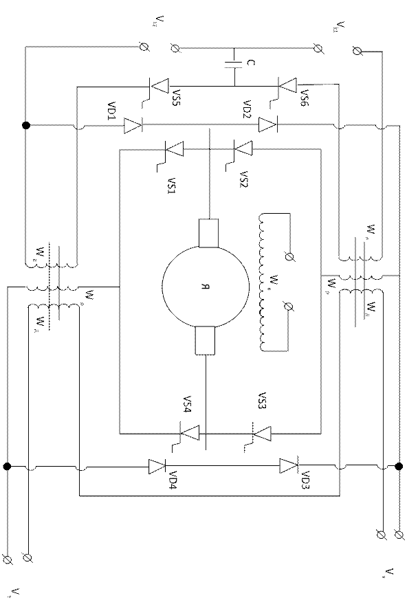 13. Схема тиристорно-широкоімпульсного перетворювача для керування двигуном постійного струму