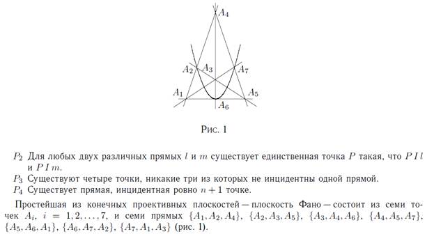 плоскости. Конечной проективной плоскостью P(2, n) порядка n называется инцидентностная