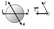 Мимо Земли летит астероид в направлении, показанном на рисунке пунктирной стрелкой. Вектор показывает силу притяжения астероида Землей. Вдоль какой стрелки (1, 2, 3 или 4) направлена сила, действу-ющая на Землю со стороны астероида?