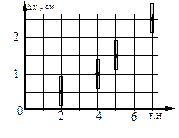 На рисунке показан график зависимости силы упругости бельевой резинки от изменения ее длины ∆ . При каких значениях изменения длины ∆ соблюдается закон Гука о пропорциональности силы упругости резинки ее удлинению?