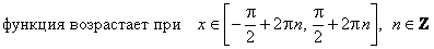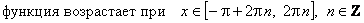 ж) Промежутки монотонности: функция возрастает на каждом интервале, целиком принадлежащем ее области определения.