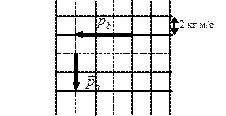 | Система состоит из двух тел 1 и 2, массы которых равны = 2 кг, = 1 кг. На рисунке стрелками в заданном масштабе указаны скорости этих тел. Импульс всей системы по модулю равен