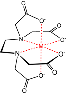 Структура комплексного иона, образованного катионом металла и анионом ЭДТА 1) Монодентатные лиганды. Такие лиганды бывают нейтральными (молекулы Н2О, NH3, CO, NO и др.) и заряженными (ионы CN−, F−, Cl−, OH−, SCN−, и др.). 2) Бидентатные лиганды. Примерами служат лиганды: ион аминоуксусной кислоты H2N — CH2 — COO−, оксалатный ион −O — CO — CO — O−, карбонат-ион СО32−, сульфат-ион SO42−, тиосульфат-ион S2O32−. 3) Полидентатные лиганды. Например, комплексоны — органические лиганды, содержащие в своём составе несколько групп −С≡N или−COOH (этилендиаминтетрауксусная кислота — ЭДТА). Циклические комплексы, образуемые некоторыми полидентатными лигандами, относят к хелатным (гемоглобин и др.). По природе лиганда [править | править исходный текст] 1) Аммиакаты — комплексы, в которых лигандами служат молекулы аммиака, например: [Cu(NH3)4]SO4, [Co(NH3)6]Cl3, [Pt(NH3)6]Cl4 и др. 2) Аквакомплексы — в которых лигандом выступает вода: [Co(H2O)6]Cl2, [Al(H2O)6]Cl3 и др. 3) Карбонилы — комплексные соединения, в которых лигандами являются молекулы оксида углерода(II): [Fe(CO)5], [Ni(CO)4]. 4) Ацидокомплексы — комплексы, в которых лигандами являются кислотные остатки. К ним относятся комплексные соли: K2[PtCl4], комплексные кислоты: H2[CoCl4], H2[SiF6]. 5) Гидроксокомплексы — комплексные соединения, в которых в качестве лигандов выступают гидроксид-ионы: Na2[Zn(OH)4], Na2[Sn(OH)6] и др.