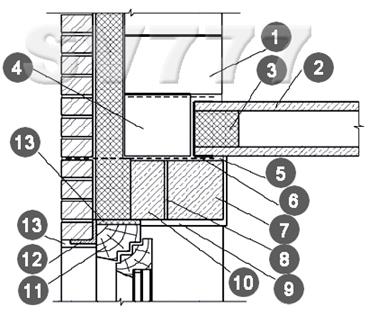 Узел сопряжения оконных блоков со стенами и плитами перекрытия Узел утепления монолитного перекрытия Цель утепление монолитного перекрытия: а) уменьшение теплопотерь здания (мостик холода - участок ограждающей конструкции здания (окончание бетонного элемента, стыки стен и т. п.), имеющий пониженное термическое сопротивление. Такие участки охлаждаются сильнее, чем другие части ограждения. Наличие температурных мостов значительно снижает эффективность теплозащиты здания. Температурные мостики являются причиной образования конденсата), б) улучшение звукоизоляции перекрытия - утеплитель хорошо поглощает звуки.