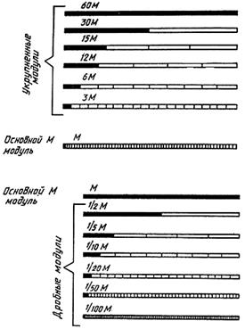 2.2. Для назначения координационных размеров объемно-планировочных и конструктивных элементов, строительных изделий, оборудования, а также для построения систематических рядов однородных координационных размеров должны применяться наряду с основным следующие производные модули (черт. 2):