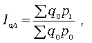 где q0 - потребительская корзина (базовый период); p0 и p1 - соответственно цены базисного и отчетного периодов. Если количество набора продуктов принимается на уровне отчетного периода (q1), то в этом случае индекс цен именуется индексом Пааше: