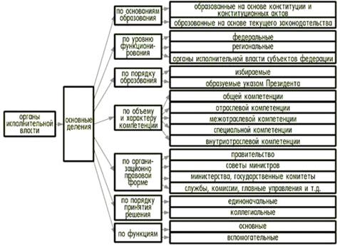 Правительство РФ, правительства республик в составе РФ, правительства, администрации иных субъектов Федерации, а также министерства и иные центральные органы исполнительной власти (включая их подразделения в субъектах Федерации), отраслевые и территориальные органы исполнительной власти субъектов РФ.