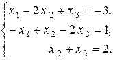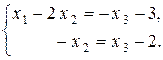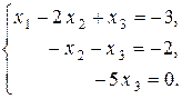 Их ранги равны числу ненулевых строк, то есть трем. Согласно теореме Кронекера – Капелли и теореме об определенности система совместна и имеет единственное решение. Найдем это решение. Из третьего уравнения следует, что x 3 = 0. Тогда из второго уравнения получим, что – x 2 = – 2, то есть x 2 = 2. Подставляя полученные значения переменных x 2 и x 3 в первое уравнение, получим x 1 – 4 + 0 = – 3, x 1 = 4 – 3, x 1 = 1. Единственным решением системы уравнений ПРИМЕР 2.