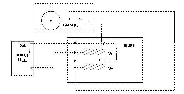 Установка состоит из системы электродов Э1 и Э2, расположенных на влажном листе бумаги; базового блока; универсального измерителя (рис. 2.4). Для подключения электродов, измерителя, генератора на щите из оргстекла установлены четыре клеммы. Для предохранения от короткого замыкания на выходах усилителя включается балластное сопротивление RБ.