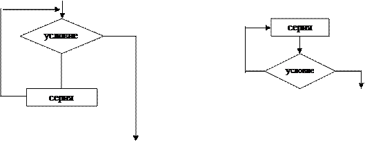 цикл типа «пока» цикл типа «до» В большинстве случаев действия должны повторяться не бесконечно, а только до тех пор, пока выполняется некоторое условие, зависящее от переменных программы. Один из вариантов такой управляющей структуры – цикл типа «пока». При входе в структуру проверяется истинность заданного логического условия и, если условие истинно, то выполняется серия действий, образующих тело цикла. После этого управление передается в начало структуры и процесс повторяется до тех пор, пока при очередной проверке логического условия оно не окажется ложным. Выполнение такого цикла может закончиться только, если в теле цикла хотя бы одно из действий изменяет условие таким образом, что после конечного числа повторений цикла оно становится ложным. Если условие с самого начала является ложным, то цикл типа «пока» не выполняется ни разу.