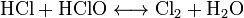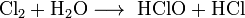 Хлорная вода — водный раствор хлора. Содержит молекулы хлора (Cl2), хлорноватистую кислоту (HClO) и хлороводород (HCl). Хлорноватистая кислота и хлороводород образуются по реакции диспропорцинирования: