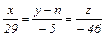 №92. Найти точки пересечения прямой Ответ: (0; 2; -1), №93. Привести к каноническому виду уравнения прямой Ответ: x – 1 = y = z – 1. №94. Найти значения параметра t, при которых прямые Ответ: t = 3. №95. Доказать, что прямые Ответ: 2(n-5)x -3 (n+5)y+3 (n-4) z +n - 35 = 0. №96. Исследовать взаимное расположение заданных в пространстве прямых: