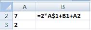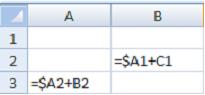 14. При копировании содержимого ячейки A2 в ячейки B2 и A3 в них появились формулы.