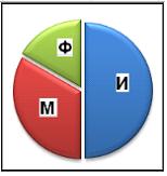 16. На диаграмме показано количество призеров олимпиады по информатике (И), математике (М) и физике (Ф) в трех городах России:
