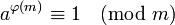 Если и взаимно просты, то , где — функция Эйлера.