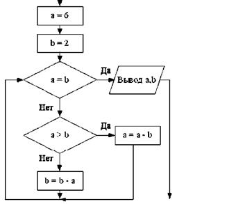 (1)При каких начальных значениях а и b алгоритм на блок-схеме закончит работу (a mod 2 - операция взятия числа а по модулю 2).