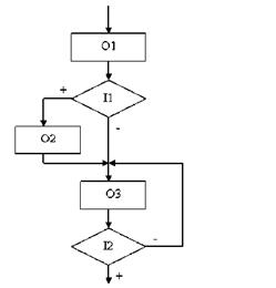 где кв - конец ветвления кц - конец цикла нц - начало цикла ●Ol; Если I1 то 02; кв; ОЗ; Пока не I2 выполнять нц ОЗ; кц; Ol; Если I1 то 02; кв; ОЗ; Пока I2 выполнять нц ОЗ; кц; Ol; Если I1 то 02; иначе ОЗ; кв; Пока не I2 выполнять нц ОЗ; кц; Ol; Если I1 то 02; кв; Пока не I2 выполнять нц ОЗ; кц;