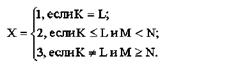 (1)Процедура KLMN ПРОЦЕДУРА KLMN; НАЧАТЬ ПРОЦЕДУРУ I I ПИСАТЬ('ВВЕДИТЕ ЗНАЧЕНИЕ К, L, M, N'); I1ЕСЛИ K=L TO I||1ЕСЛИ М<И ТО IIll|X:=1 IИНАЧЕ IIll|X:=2 II I I КОНЕЦ ЕСЛИ I|КОНЕЦ ЕСЛИ КОНЕЦ ПРОЦЕДУРЫ; реализует следующее алгебраическое выражение...