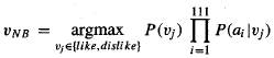 = argmax P(Vj) P(a1="We"|Vj) *... * P(a6="text"|Vj)